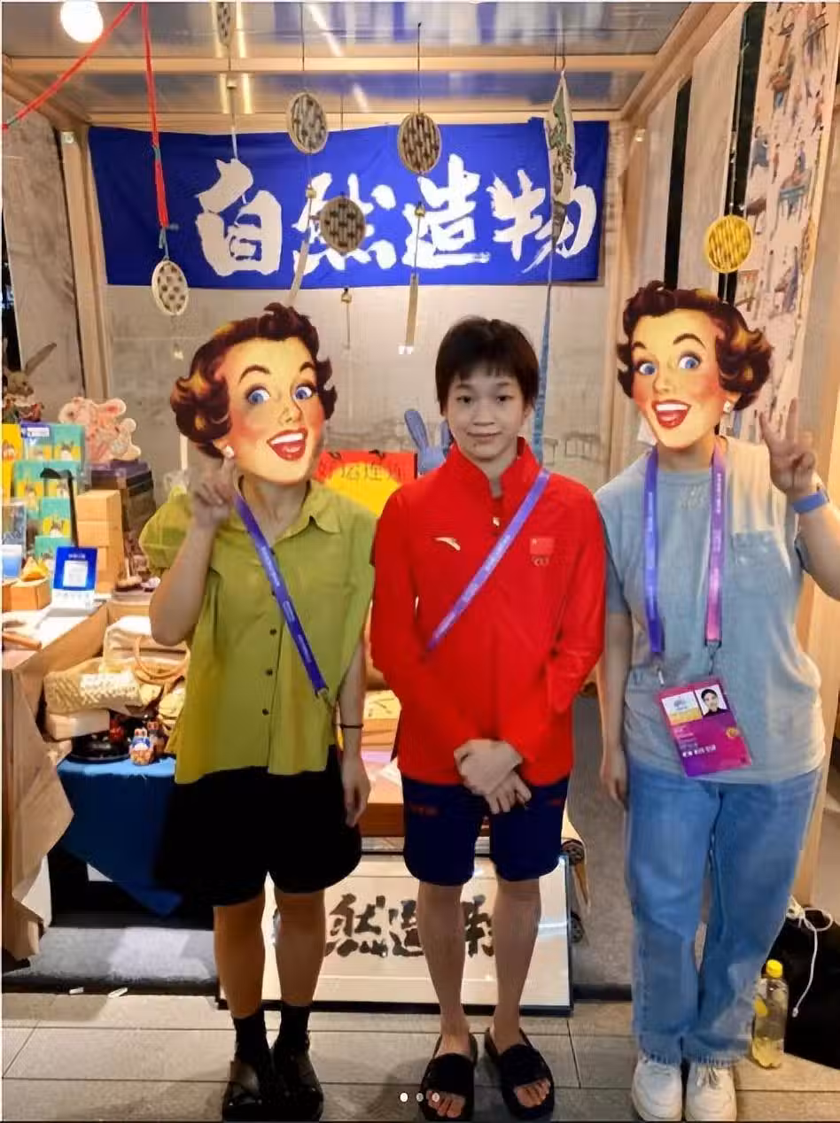 移動打卡景點!全紅嬋被台灣桌球選手追星,穿短褲拖鞋笑容燦爛