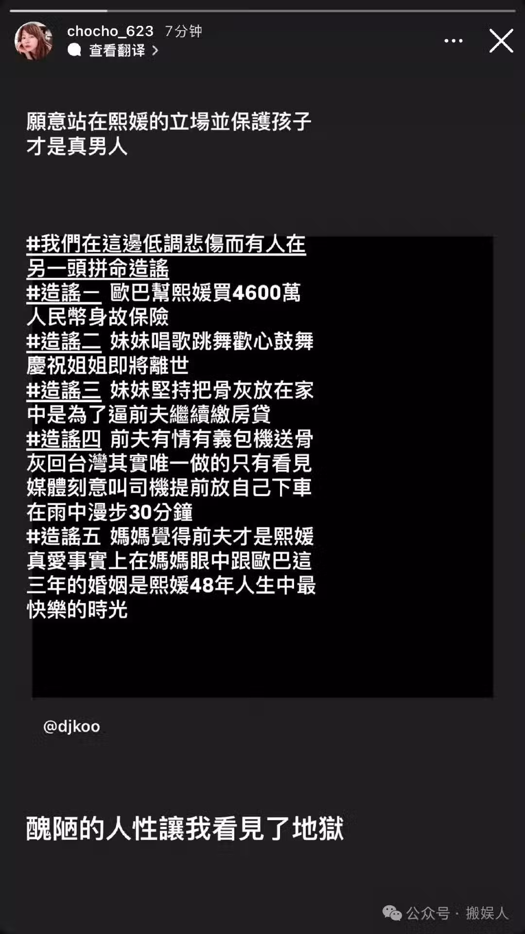 二是駁斥 「小 S 唱歌跳舞慶祝姐姐即將離世」 這種荒誕說法;