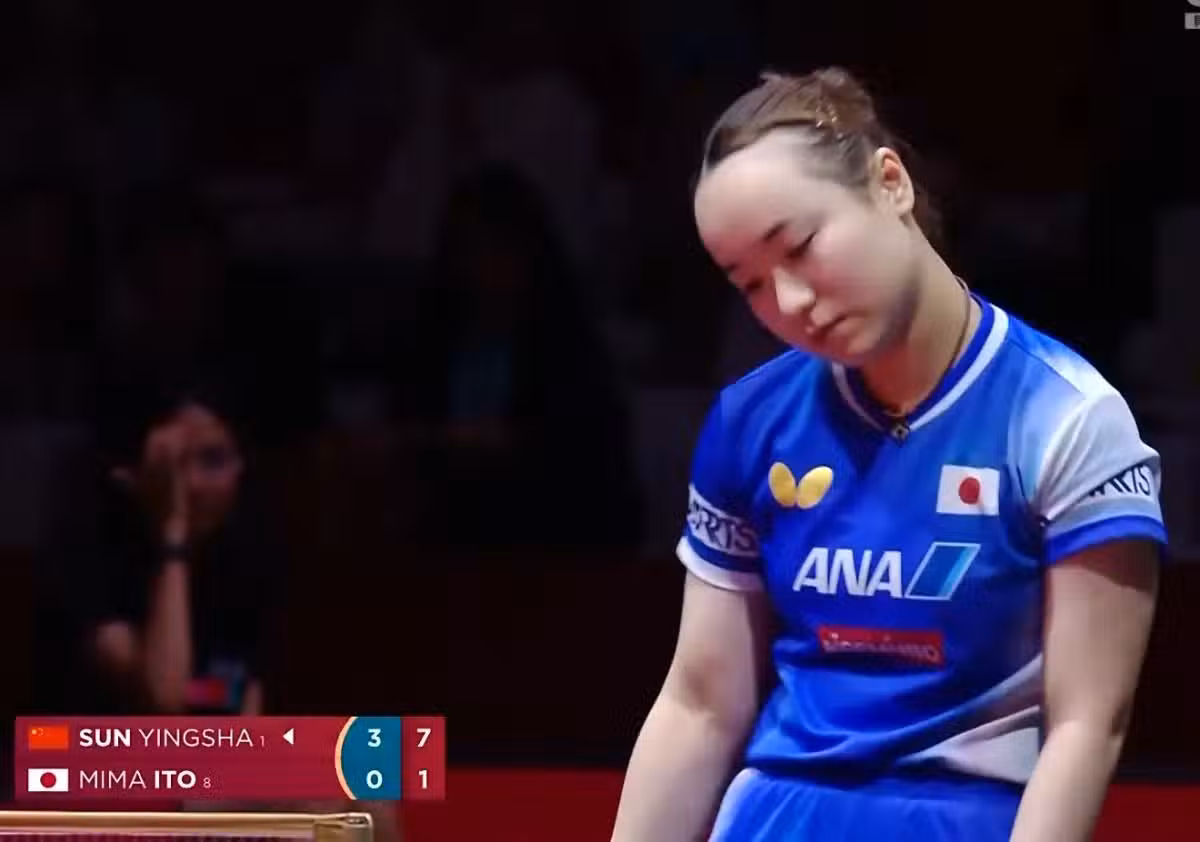 四局比賽,伊藤美誠甚至都沒有一局在孫穎莎手上打到了爆分,最接近的一局是11:9,第3局後面沒有能得到9分,所以她實在是不知道該怎麼贏。用解說的話說:「我就用一招跟你打,我明牌,我手裡倆王4個2,你怎麼贏呢?我倒也不用給你搞什麼戰術變化,就這種正常打,你就不是對手。」