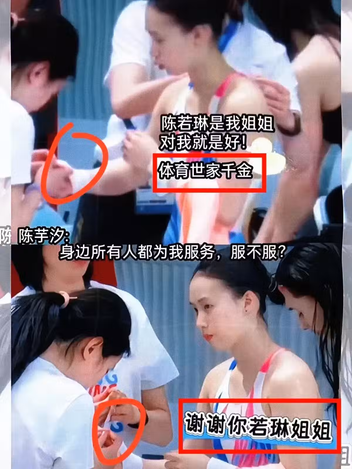 陳若琳是全紅嬋的教練,但她不僅僅是全紅嬋的教練,還是國家跳水隊的教練。在這個身份下,她為每位運動員提供幫助和服務。儘管如此,一張陳若琳為陳芋汐綁繃帶的照片卻引起了廣泛討論。這樣的行為其實並不必要製造對立,體育圈本該是互助友愛的環境。全紅嬋與陳芋汐的關係也正是如此,互相幫助是她們作為運動員和隊友的一部分。