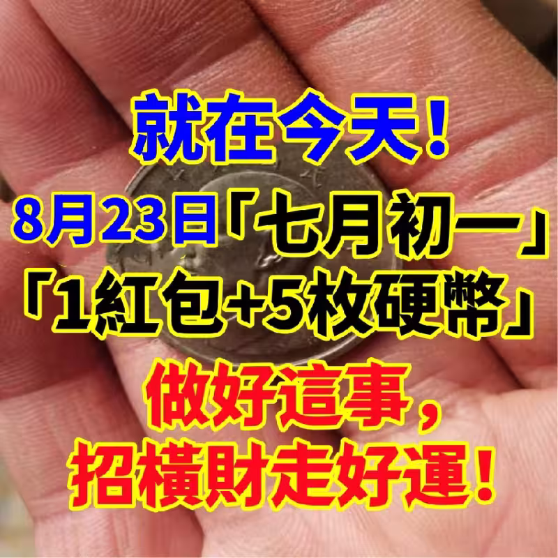 就在今天! 8/23日「七月初一」準備「1個紅包+5枚硬幣」做好這事,招橫財走好運