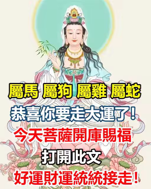 【屬馬女 屬狗女 屬雞女 屬蛇女】恭喜你要走大運了!今天菩薩開庫賜福,打開此文好運財運統統接走~
