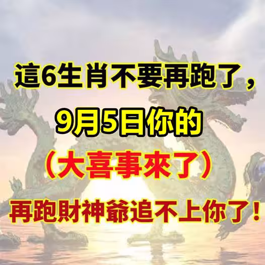這6生肖不要再跑了,9月5日你的(大喜事)來了,再跑財神爺追不上你了!