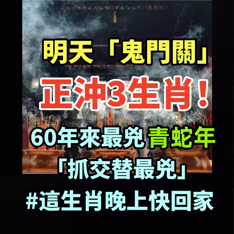 明天「鬼門關」正沖3生肖!60年來最凶青蛇年 「抓交替最凶」#這生肖晚上快回家