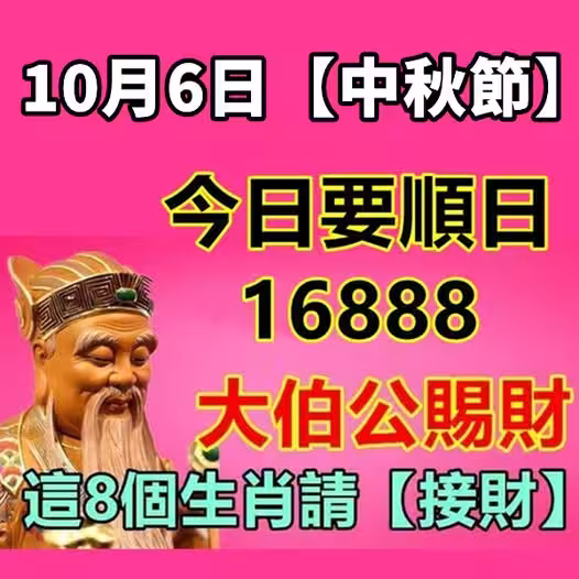 10月6日【中秋節】今日要順日,大伯公賜財,這8個生肖請接財