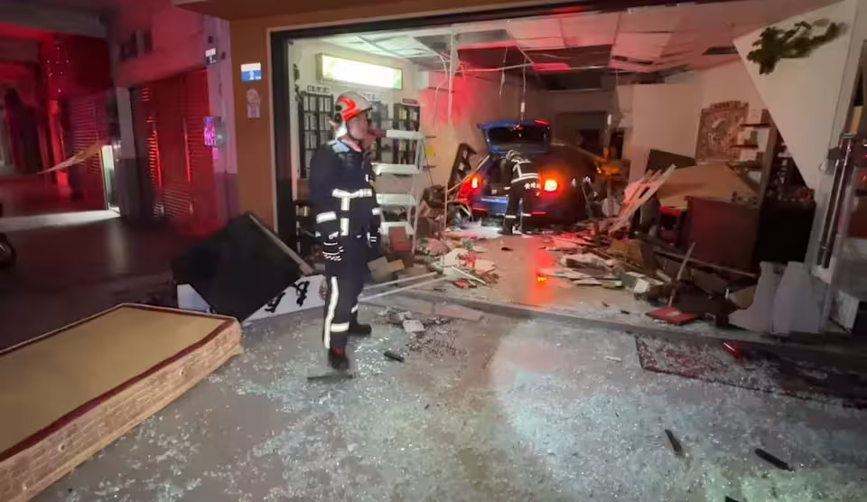 毒駕男子高速撞進店面,內部宛如被轟炸般凌亂。