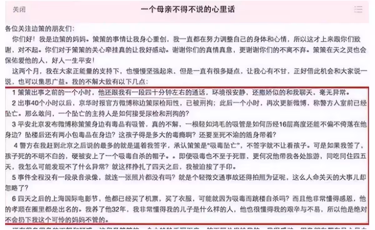 同情邊策的母親,可他觸及底線的行為讓人無法原諒。