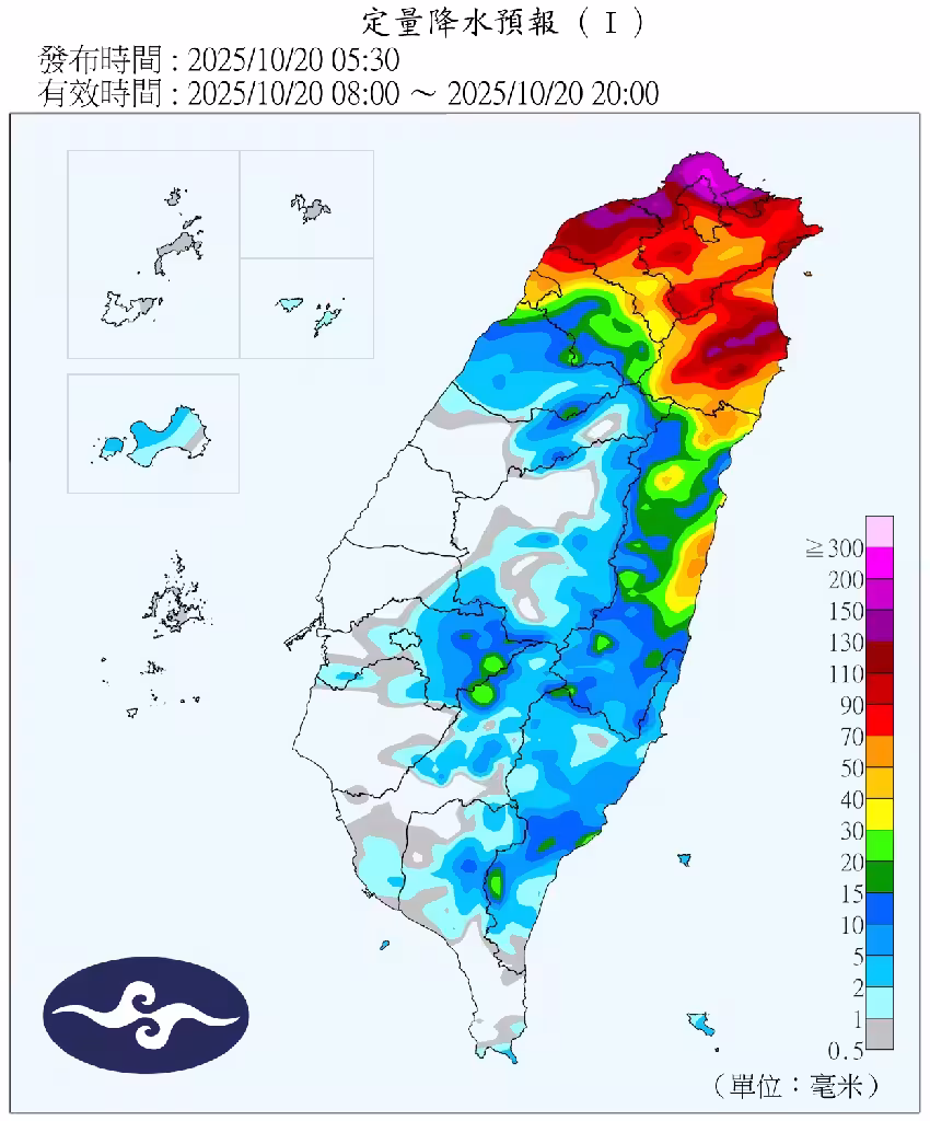 東北部近海區域可能出現低壓系統發展,與東北季風相互加乘效應,使降雨強度進一步增強,預計持續影響至周三上午。周三上午至周四的降雨趨勢將取決於低壓系統的移動路徑與位置。