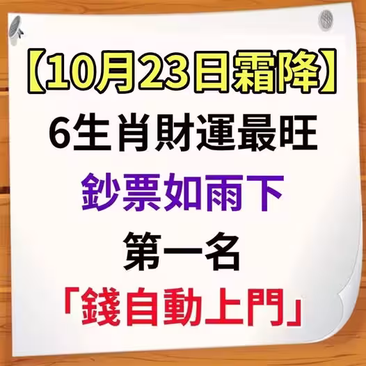 【10月23日霜降】6生肖財運最旺,鈔票如雨下,第一名「錢自動上門」