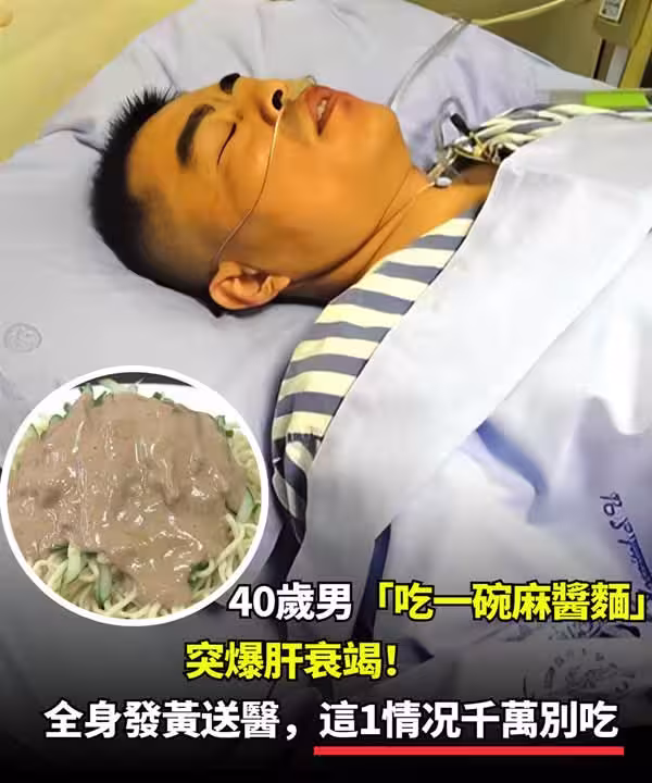40歲男「吃一碗麻醬麵」突爆肝衰竭!全身發黃送醫,這一情況千萬別吃