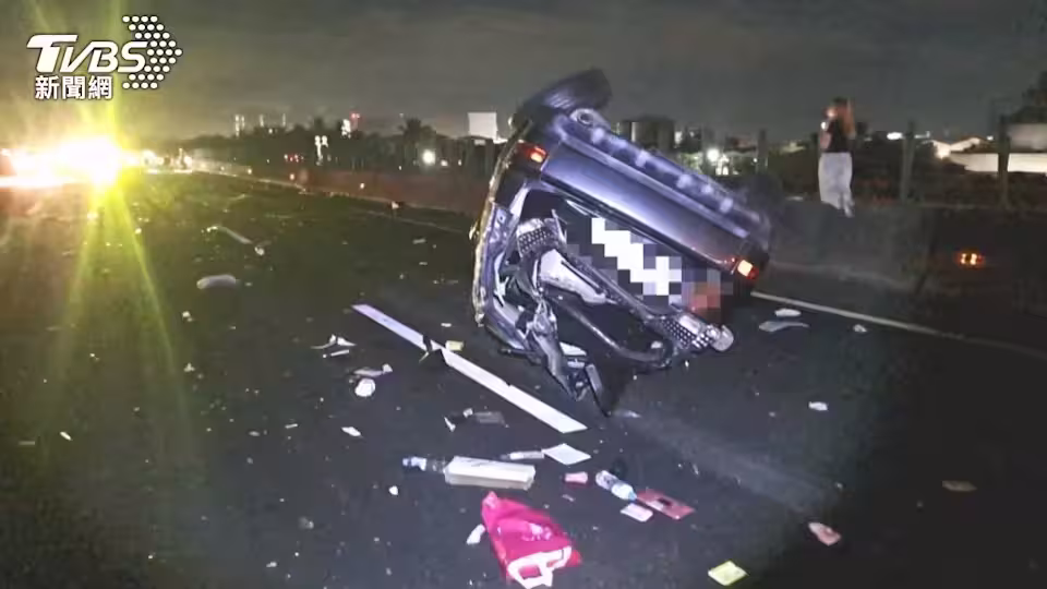 在國道一號台南仁德路段,一場嚴重車禍讓現場一片混亂。一輛銀色轎車撞上護欄後停在內側車道,而更驚人的是一輛黑色轎車完全失控翻覆,在空中翻滾了10多圈,車輛零件隨之噴飛散落一地,附近車輛紛紛打開雙黃燈緊急閃避。