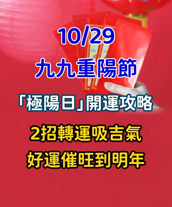 10/29九九重陽節「極陽日」開運攻略!2招轉運吸吉氣 好運催旺到明年