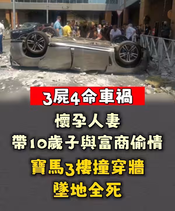 3屍4命車禍│懷孕人妻帶10歲子與富商偷 情 寶馬3樓撞穿牆墜地全死