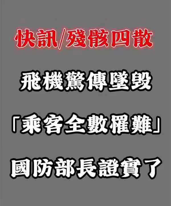 快訊 / 殘骸四散!飛機驚傳墜毀「乘客全數罹難」國防部長證實了!