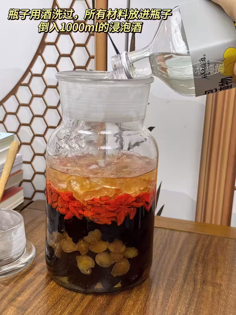 ⚠️注意:泡酒之前玻璃罐需要用酒清洗一下,食材也用酒清洗一下,這樣泡出來的酒才不會變質,一定不可以用清水洗哦