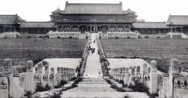 1901年,日本人拍攝的紫禁城,滿目淒涼,太監站在雜草中發獃