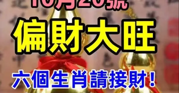 10月20號偏財大旺,六個生肖請接財!錯過再等一年