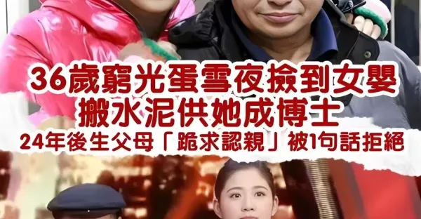雪夜撿到棄嬰!36歲窮光棍 「扛水泥24年」養出博士女兒,生母「跪求認親」被1句話拒絕