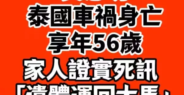 黃志明泰國交通事故身亡享年56歲, 家人證實死訊「遺體運回大馬」