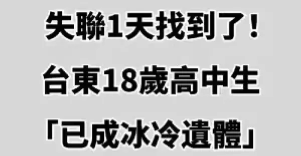 快訊/失聯1天找到了!台東18歲高中生「已成冰冷遺體」死在秘境!