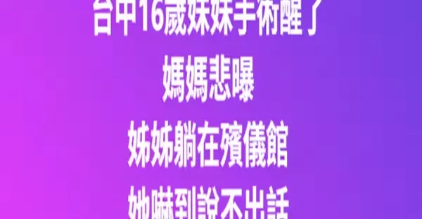 台中16歲妹妹手術醒了!媽媽悲曝「姐姐躺在殯儀館」她嚇到說不出話!