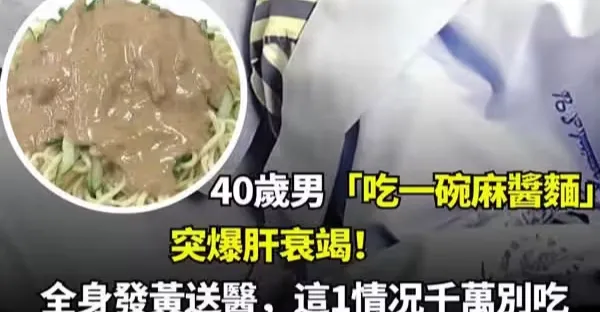 40歲男「吃一碗麻醬麵」突爆肝衰竭!全身發黃送醫,這一情況千萬別吃