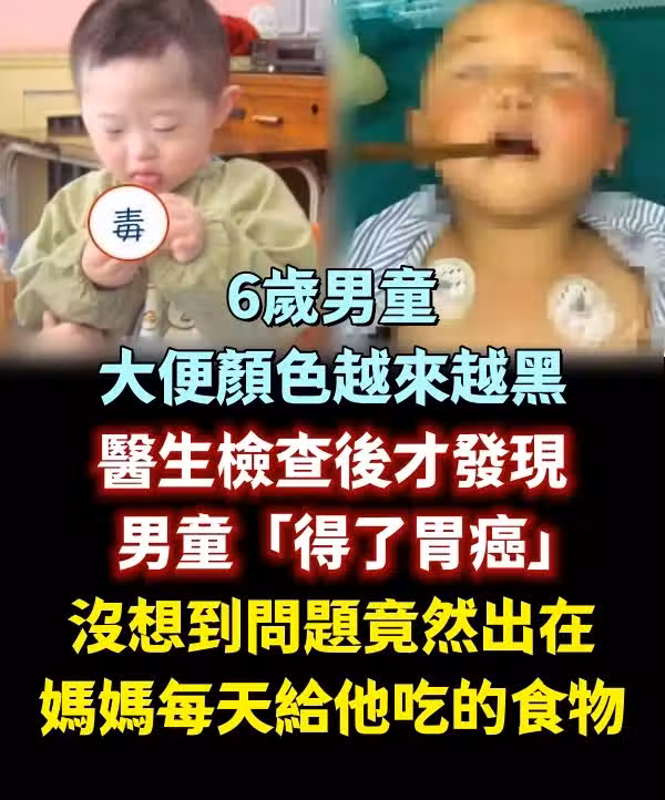 6歲男童大便顏色越來越黑,醫生檢查後才發現男童「得了胃癌」!沒想到問題竟然出在媽媽每天給他吃的「這個食物」
