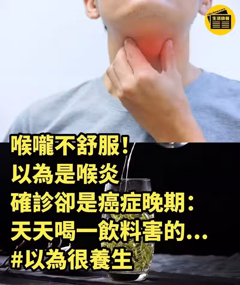 喉嚨不舒服! 以為是喉炎「確診卻是癌症晚期」:天天喝一飲料害的...#以為很養生