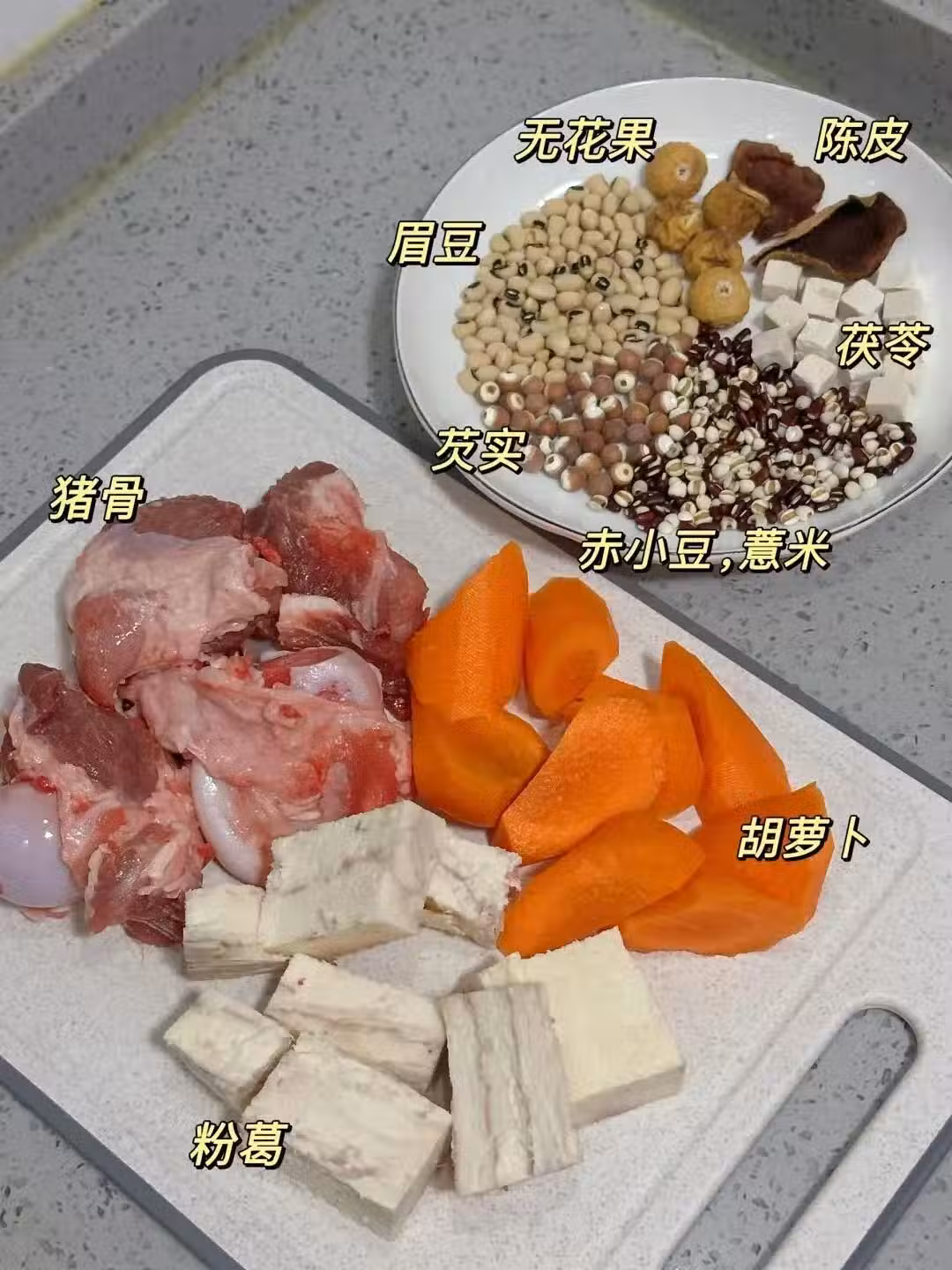 3⃣無花果,芡實,茯苓,眉豆,赤小豆,薏米,陳皮用清水浸泡10分鐘,洗凈備用