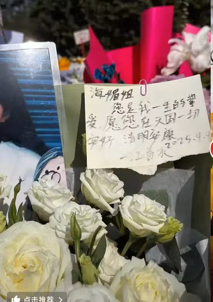 還有一名暱稱是一江春水的網友給周海媚送上了白玫瑰,希望她在天國一切安好,清明安康------------------------