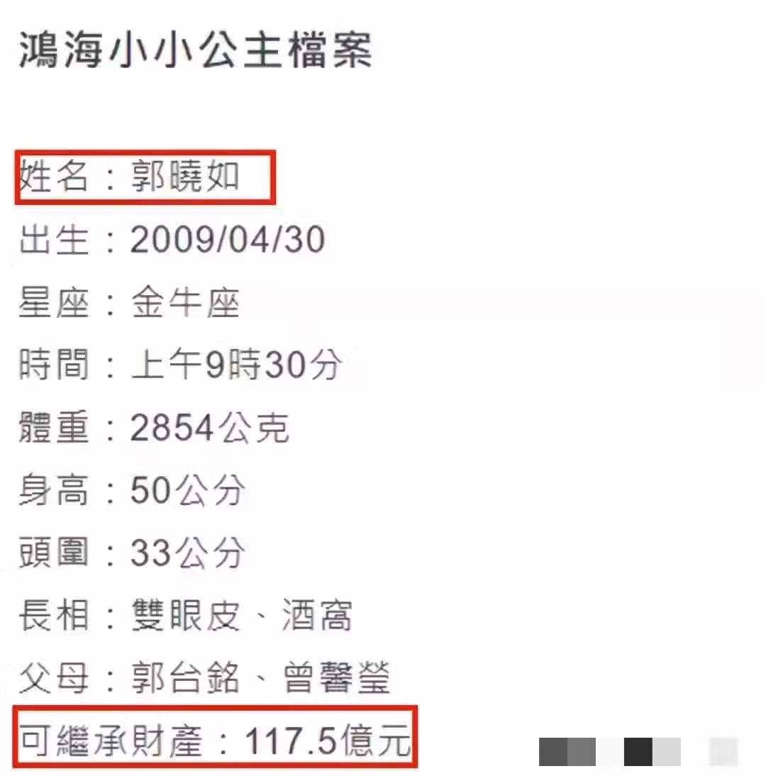 畢竟郭曉如出生的時候,郭台銘已經58歲了。
