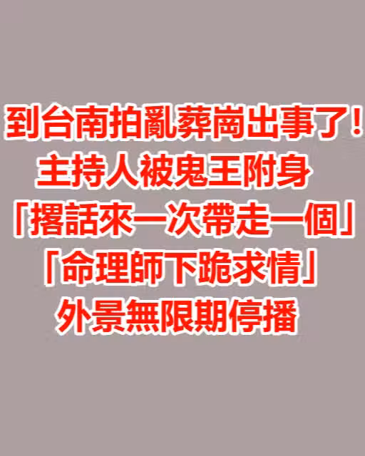 到台南拍亂葬崗出事了…主持人被鬼王附身「撂話來一次帶走一個」 「命理師下跪求情」外景無限期停播