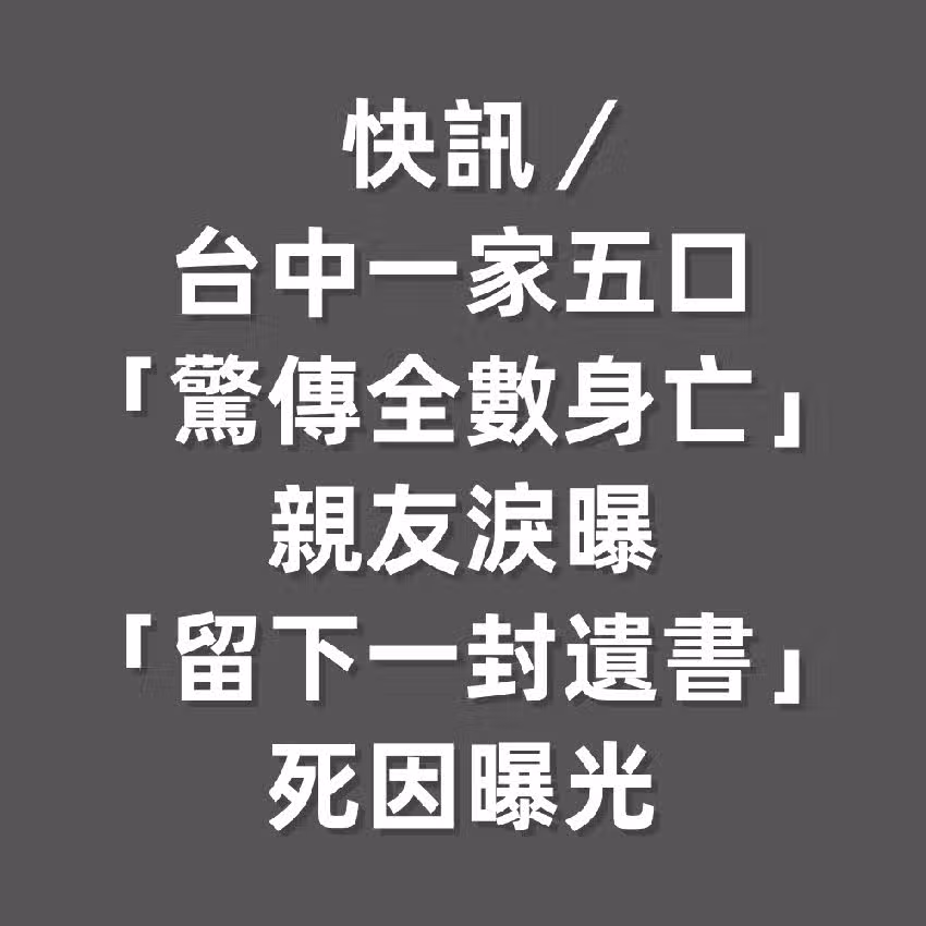 快訊/台中一家五口「驚傳全數身亡」!親友淚曝「留下一封遺書」死因曝光~