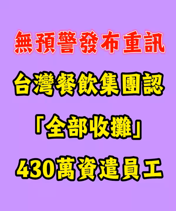 無預警發布重訊!台灣餐飲集團認「全部收攤」430萬資遣員工