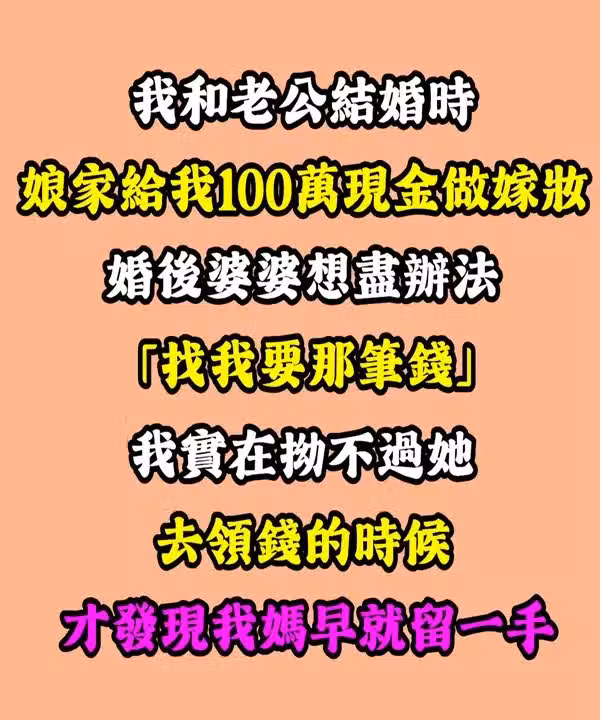 我和老公結婚時,娘家給我「100萬現金」做嫁妝。婚後婆婆想盡辦法「找我要那筆錢」,我實在拗不過她…去領錢時「才發現我媽早就留一手」