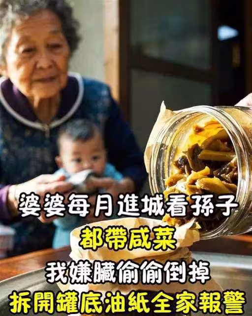 婆婆每月都要進城帶鹹菜看孫子,我嫌髒偷偷倒掉,拆開罐底油紙全家報警