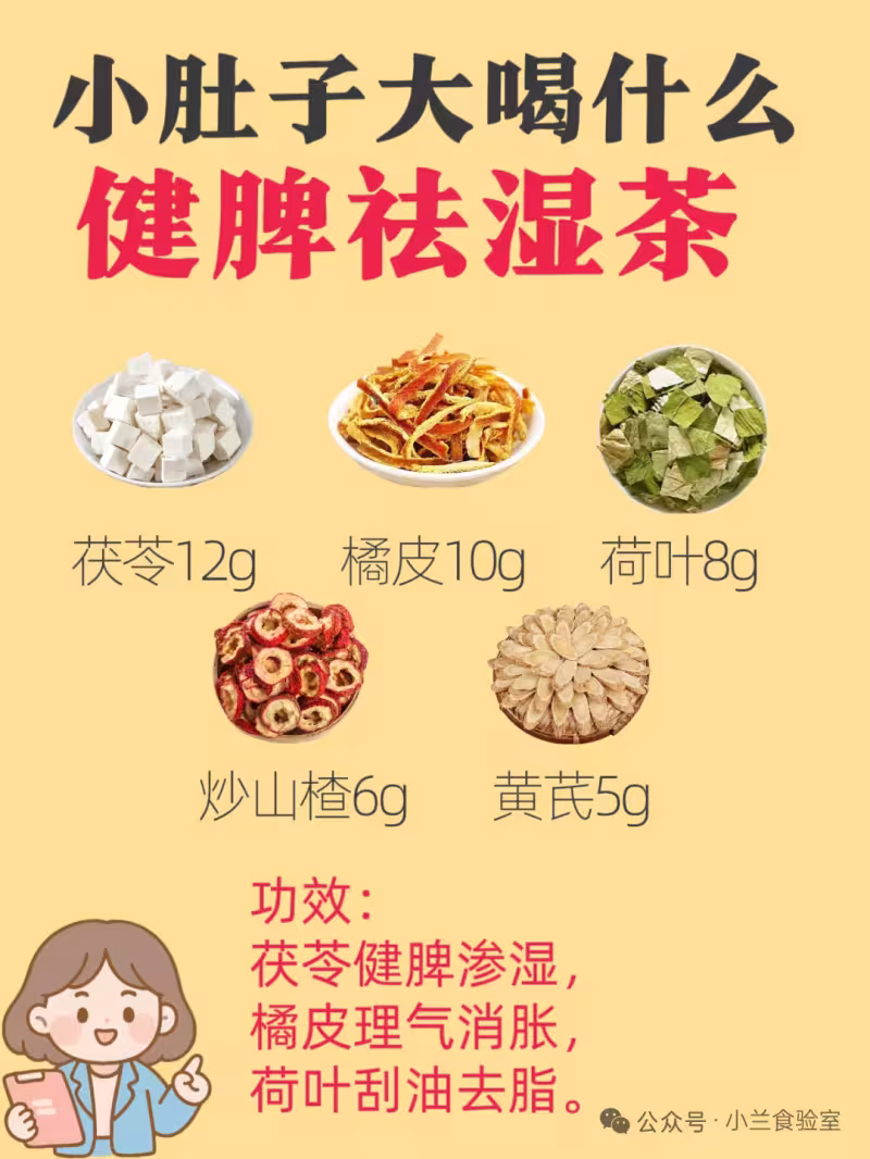 功效:茯苓健脾滲濕,橘皮理氣消脹,荷葉刮油去脂。專治久坐的"水桶腰",小肚子越喝越薄!