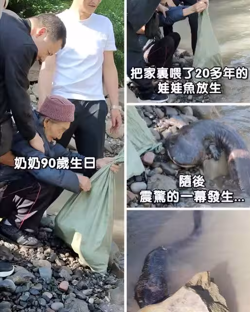 阿嬤90歲大壽最暖決定!放飼養22年「鎮宅寶」娃娃魚回歸溪流,下水瞬間親人淚崩:它在跟阿嬤道別.....