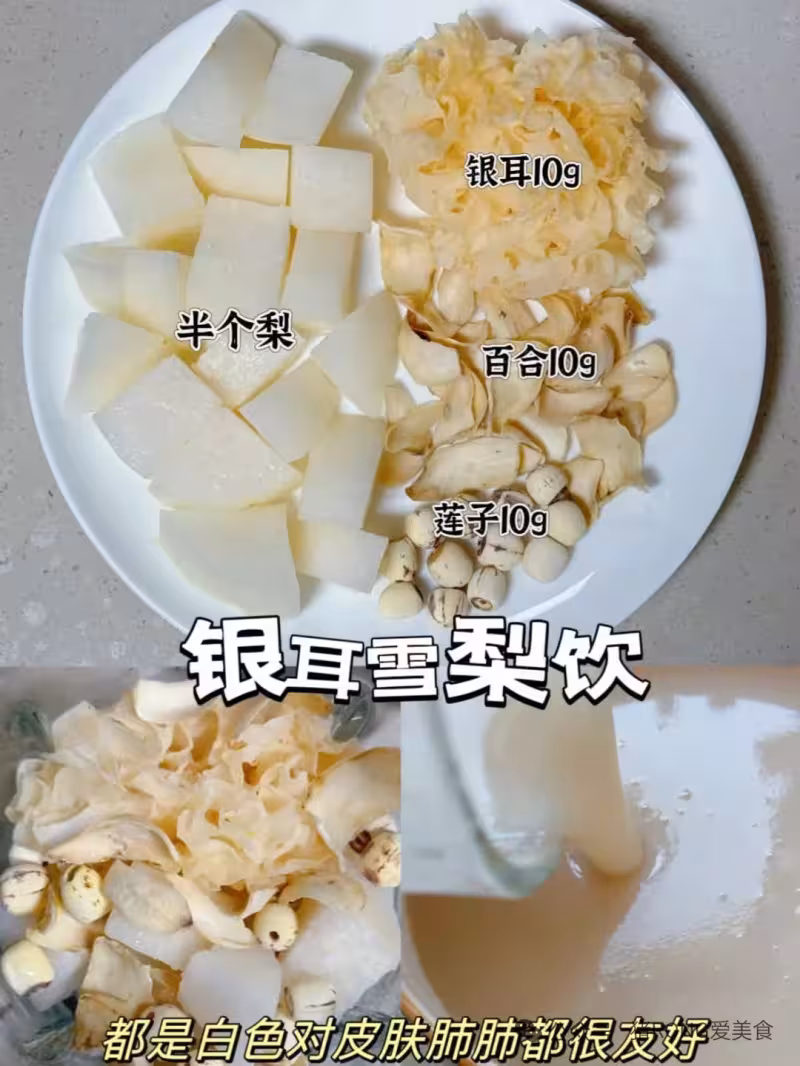 6️⃣銀耳雪梨飲:半個梨+百合10g蓮子10g銀耳10g+加水 破壁機水位線600ml位置