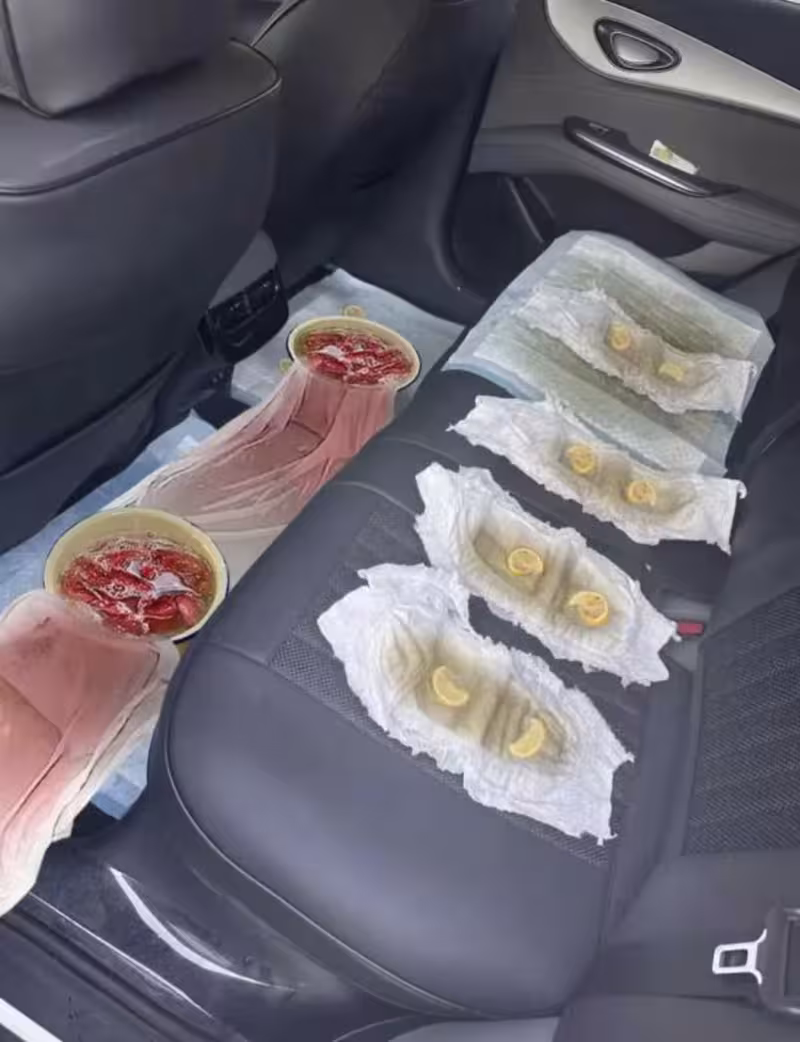 車內地面上鋪著一層濕濕的尿不濕,這些尿不濕不僅占據了車座,還放置著幾片檸檬片,看到這一幕,丈夫當即轉身,對4S店工作人員說:「這車我們不要了。」他滿臉憤怒,對這種極其不專業的車內處理方式感到無比失望。