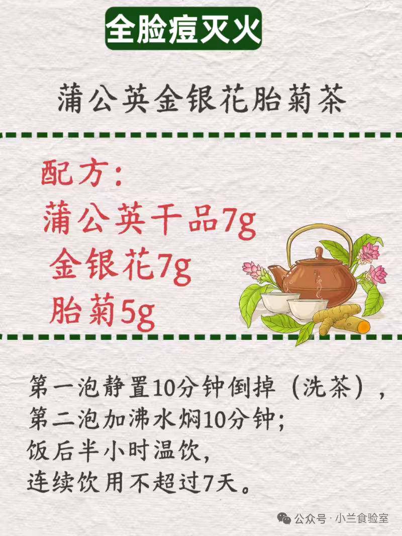 蒲公英干品7g + 金銀花7g + 胎菊5g