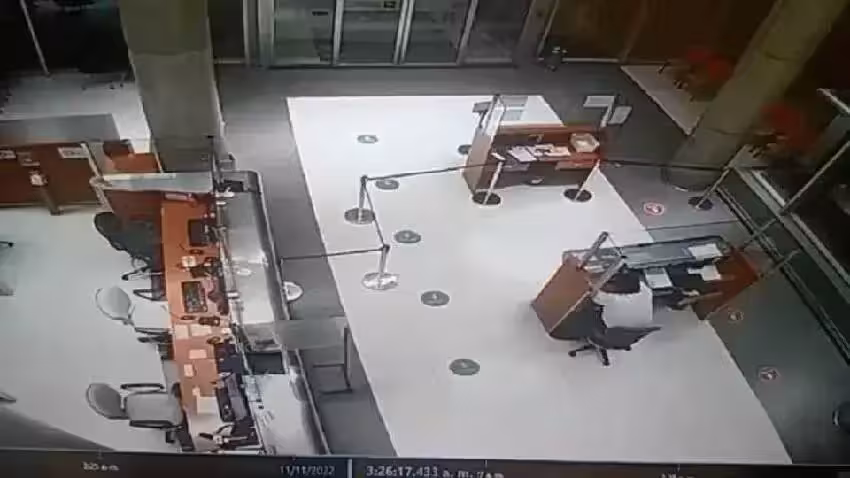 不過令人不寒而慄的是,保全一直都在獨自和空氣對話,大廳中從始至終也只有他一人…