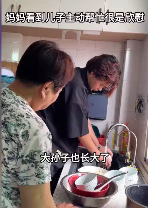 楊淙的大兒子,霆霆主動承擔起了全家人的飯後洗碗工作,要知道楊淙的兒子還沒有上大學,沒成年呢。