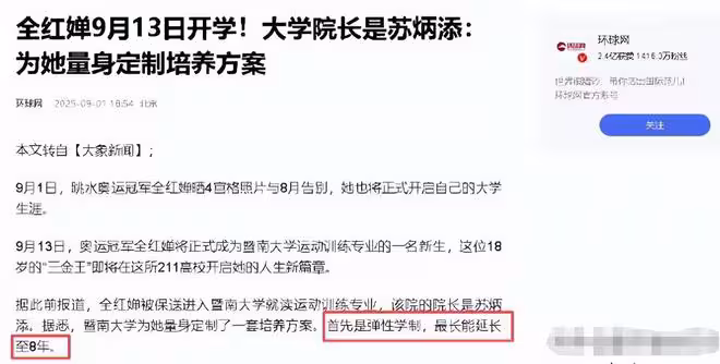 別讓冠軍寒了心!入學僅4天,噁心的事發生,官媒:全紅嬋自己決定