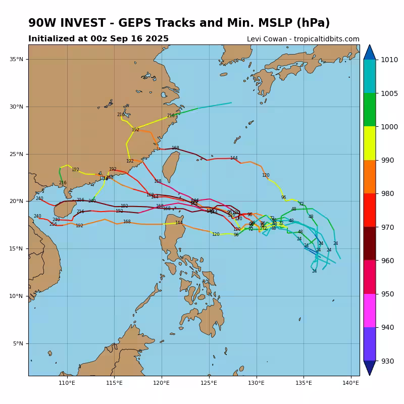 路徑預估方面,90W預計於22日朝台灣東南方海面移動,23日至24日將通過恆春以南海面,隨後往廣東方向前進,25日才會遠離台灣周邊。