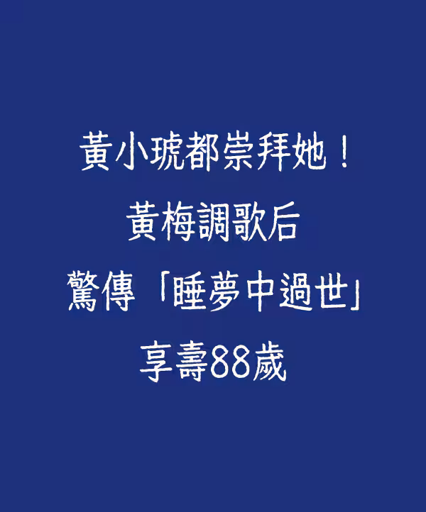 黃小琥都崇拜她!黃梅調歌后驚傳「睡夢中過世」享壽88歲