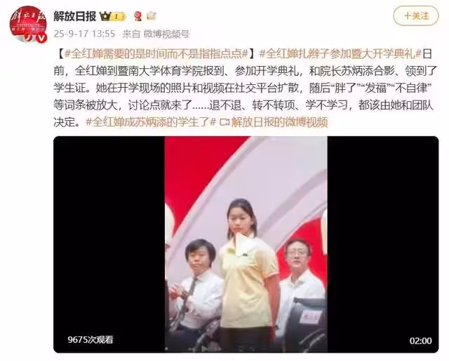 全紅嬋入學4天遭網暴,解放日報怒了:退不退由她自己決定!