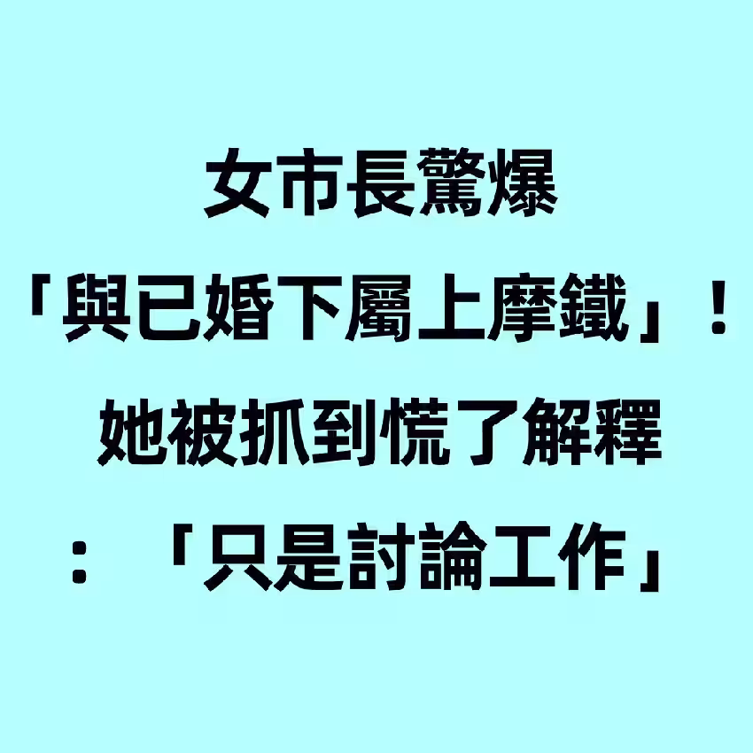 女市長驚爆「與已婚下屬上摩鐵」!她被抓到慌了解釋:「只是討論工作」