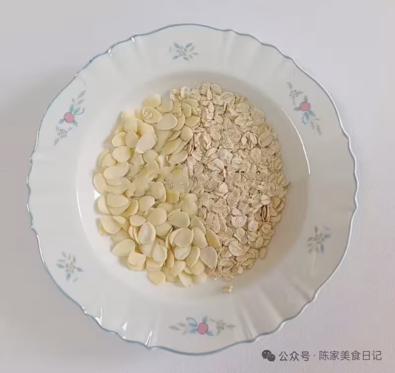 甜杏仁30克、即食燕麥40克、蜂蜜或冰糖適量