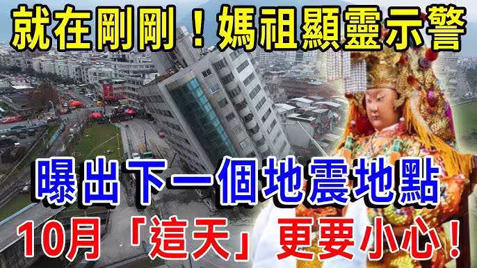 就在剛剛!媽祖顯靈發出緊急通知,下一個「大地震地點」!10月「這天」更要小心!